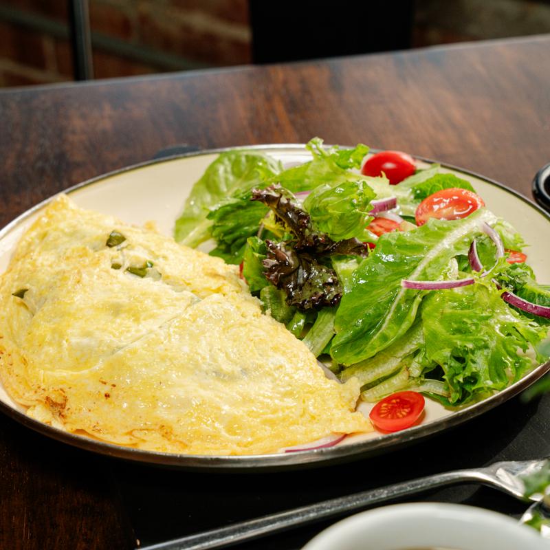 Soft egg omelette with Oaxaca cheese, roasted peppers, mushrooms, and onion. Served with fresh house salad and sauce upon request.